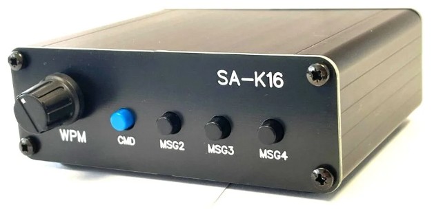 The K16 EXT uses the incredible K16 keyer IC. It requires an external power source of 7-12 volts. It is intended to be embedded in an existing radio or installed in a user supplied enclosure with message pushbuttons, speed control, paddle interface and MOSFET outputs. The K16 is assembled and tested.