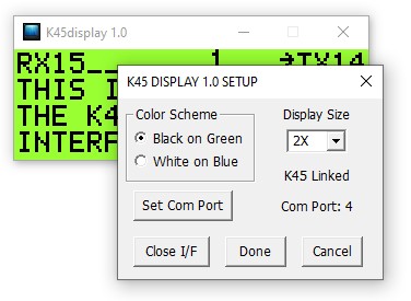 9) To end a K45 Display session, Open the setup dialog, Click Close I/F, click Done, and then